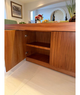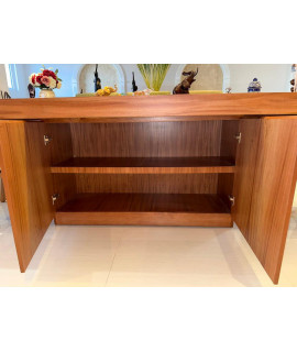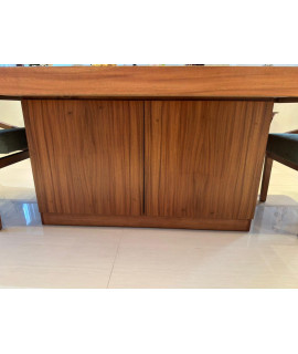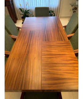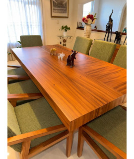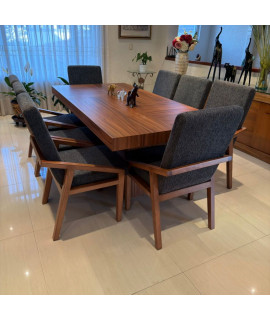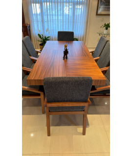 Con un pedestal integrado para almacenamiento adicional y una cubierta que muestra las hermosas vetas naturales de la madera, este comedor ofrece una apariencia autentica y una calidad excepcional.