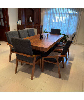 El comedor Lyra rectangular es un conjunto elegante y funcional que combina estilo y practicidad. Disponible en configuraciones de 8 o 6 sillas, y en diferentes tonos de tapiz para adaptarse a diferentes estilos de decoración.