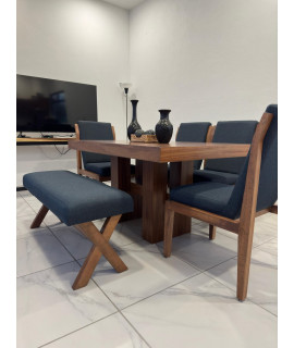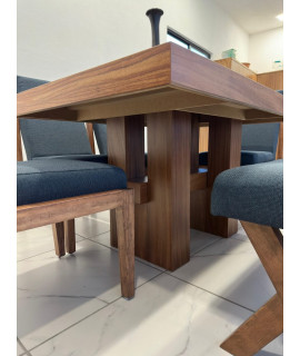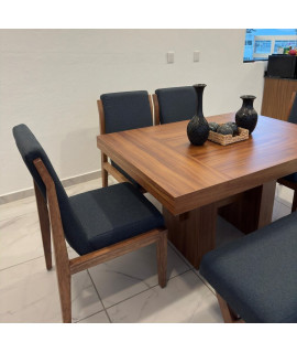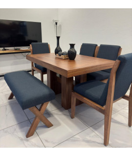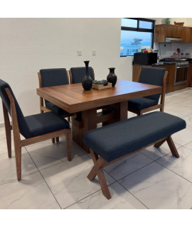 El comedor Orión es un conjunto de estilo vintage moderno, ideal para espacios pequeños. Con capacidad para 6 personas, presenta sillas que se pueden tapizar en el color ideal para su espacio. El comedor esta elaborado con chapa de parota, ofreciendo durabilidad y un aspecto natural. Disfruta de la combinación perfecta de estilo y funcionalidad con el comedor Orión en tu hogar.