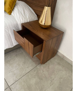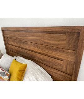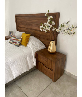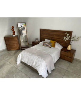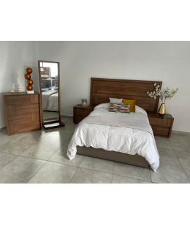 La recámara modelo AQUILA de 5 piezas le dará un aspecto cálido a tu habitación. Esto debido al estilo vintage que luce su cabecera King Size fabricada con madera industrializada de gran resistencia para prolongar su durabilidad.