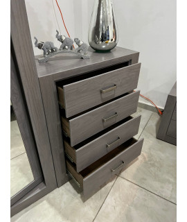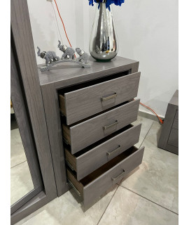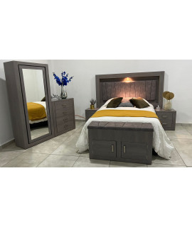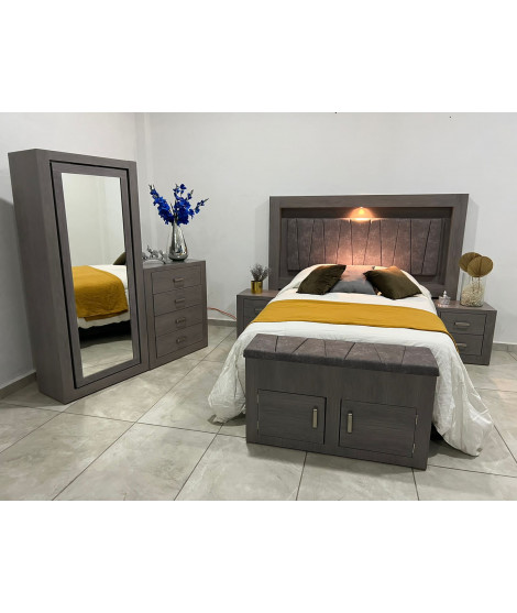 La recamara modelo ALYA Gris se distingue por su elegancia, estilo, confort y calidad con un toque moderno, brinda un estilo moderno por sus altos materiales de calidad, Incluye dos buros, cómoda y un espejo amplio para tener a la mano tus pertenencias de forma organizada y segura. La cabecera tamaño King Size con luz central fabricada de madera industrializada proporciona un estilo moderno a tu habitación.