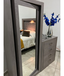 La recamara modelo ALYA Gris se distingue por su elegancia, estilo, confort y calidad con un toque moderno, brinda un estilo moderno por sus altos materiales de calidad, Incluye dos buros, cómoda y un espejo amplio para tener a la mano tus pertenencias de forma organizada y segura. La cabecera tamaño King size con luz central fabricada de madera industrializada proporciona un estilo moderno a tu habitación.